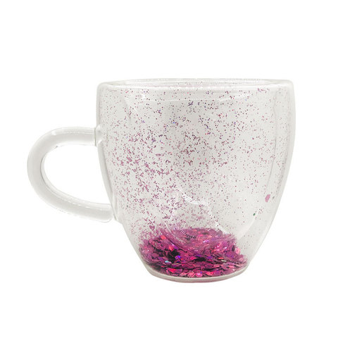 Taza de cristal brillante en forma de corazón, doble capa, resistente a altas temperaturas, creativa, con purpurina, arena movediza, café