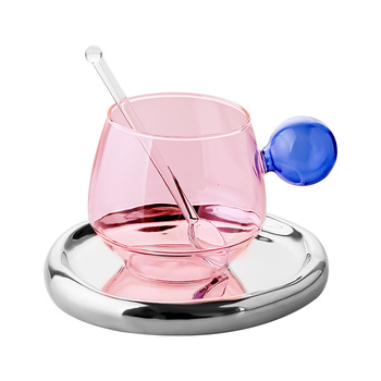 UCHOME Ins Corea mango de bola taza de agua de vidrio de color exquisito juego de tazas de té de la tarde