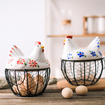 UCHOME hogar animales de dibujos animados de hierro cesta de huevo de gallina de huevo cesta de almacenamiento portátil vegetal de la fruta de la cesta