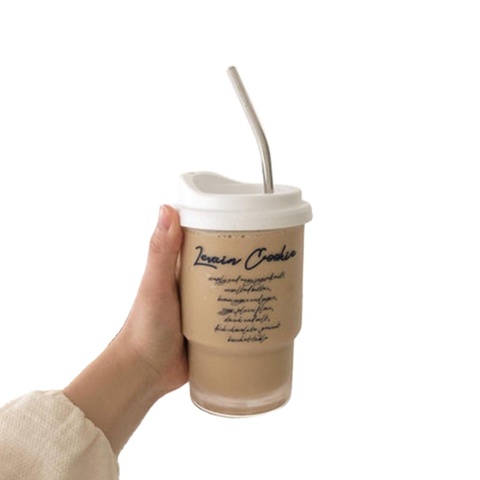 Taza de cristal de paja con letras negras, vaso de agua de gran capacidad con tapa, estilo ins coreano, nueva preventa