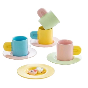 UCHOME nuovo arrivo macaron color contrast tazza da caffè in ceramica e piattino set creativo semplice tazza da tè pomeridiano regalo tazza d'acqua