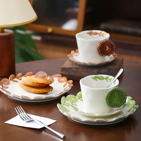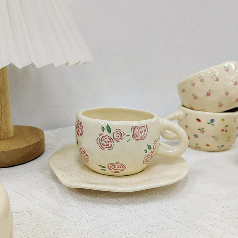 UCHOME fabbrica vendita diretta retro fiore ceramica tazza da caffè e piattino set dipinto a mano irregolare pomeriggio tazza da tè