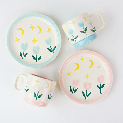 UCHOME Ins korea bella tazza di ceramica tulipano e piatto creativo semplice tazza di acqua a buon mercato torta da dessert piatto