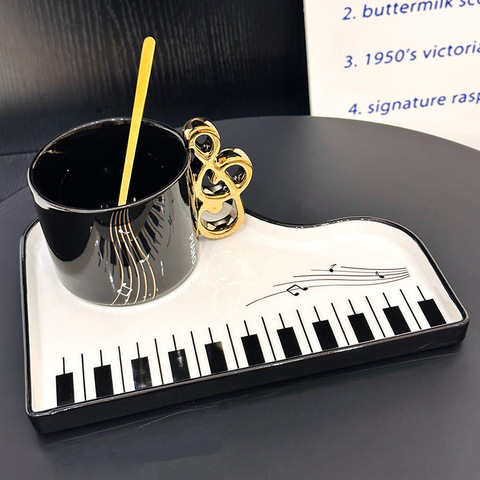 Commercio all'ingrosso creativo UCHOME Piano a forma di ceramica nero bianco tazza tazza di caffè e piattino con cucchiaio impostato come regalo