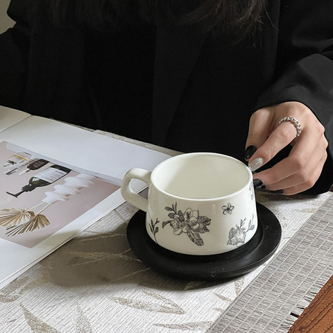 Commercio all'ingrosso UCHOME dipinto a mano acquerello bianco e nero ceramica tazza di caffè set squisito pomeriggio tazza di tè