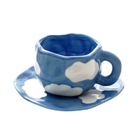 Feichome-tasse à main irrégulière, tasse et soucoupe en métal coloré, bleu ciel et blanc