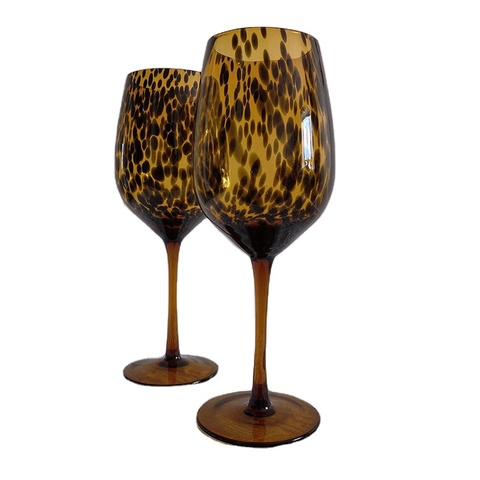 ヒョウ琥珀色の斑点のあるウォーターカップ手作りガラスカップヴィンテージゴブレット