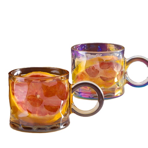 UCHOMEIns韓国ボールハンドルカラーガラスウォーターカップ絶妙なアフタヌーンティーカップセット