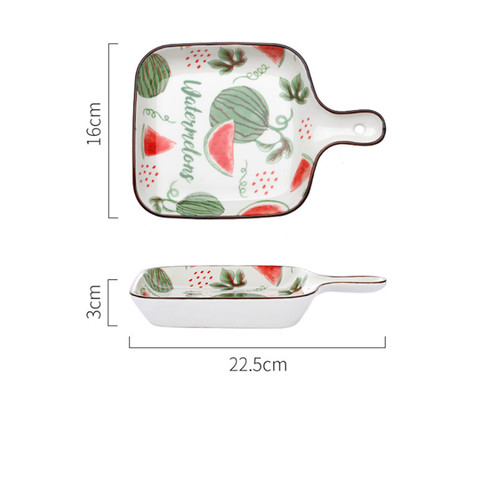 UCHOME จานอาหารค่ำลายการ์ตูน,จานเซรามิกทรงสี่เหลี่ยมพร้อมด้ามจับ